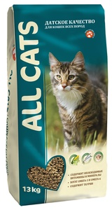 ALL CATS — это полноценный рацион для кошек любых пород, размеров, возраста и уровня активности. Корм ALL CATS основан на новейших исследованиях в области кормов для домашних животных, а также на международных стандартах в отношении рекомендуемых норм содержания питательных веществ (AAFCO/FEDIAF).